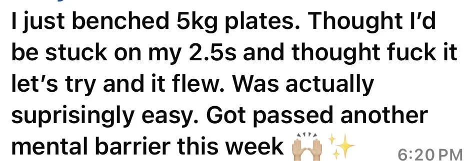 I won’t promise you a magical PB every session — that’s not how lifting works. What I will promise is a clear roadmap, the right strategy, and a space that calls you higher. You’ll be guided through every step — from training tweaks to mindset shifts to the exact flow of meet day — so all you have to do is show up, do the work, and watch yourself mf riseeee😈
